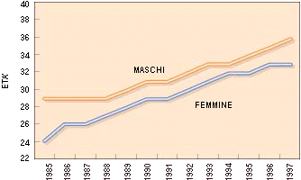 a quella dei maschi, segno di una più giovane età media al momento dell'infezione.